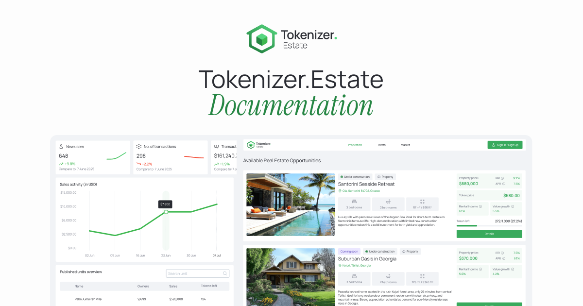 Welcome to the Tokenizer.Estate admin panel documentation. This guide provides a complete overview of the platform’s features, setup requirements, and best practices for managing tokenized real estate units, users, transactions, and smart contracts.